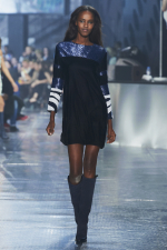 Колекцията включва рокли тип комбинезон и драпирани топове, които се съчетават с мъжки сака, рокерски и пилотски якета. Използваните материи са копринен креп, копринен сатен, фин кашмир и кадифе, както и бродерии с пайети и камъни. Палтата от изкуствена кожа с косъм усилват усещането за плътност.