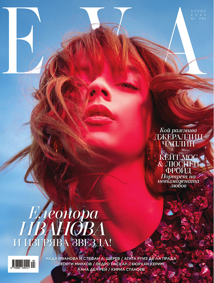 В този брой - Джералдин Чаплин. Ще я видите такава, каквато я улови камерата на Светослав Караджов специално за EVA. На 79 г., по време на разговорас Лили Илиева Джералдин възкликва: „Обичам цветове, цветове, цветове“. Облечена е с блуза, по която хвърчат ангели и пеперуди, и споделя неща от живота и снимачните площадки, с които преоткриваме любовта – и към киното, и към мъжете.