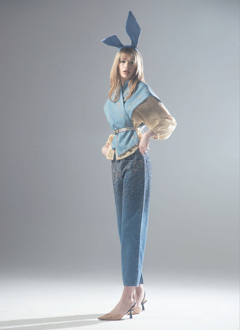 дънки Just Cavalli, златна риза Peserico, дънки топ Camilla от Trend Box, деним аксесоар Petya Antonova, обувки архив на стилиста
