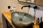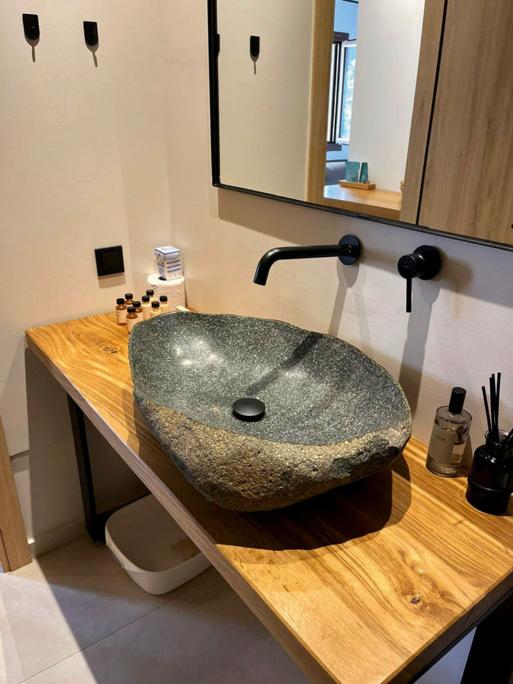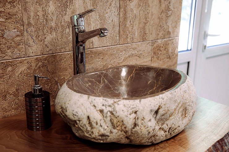 Комбинацията от изваяния от природата релеф и умелата обработка, вписваща нова форма в изначалната и съчетаваща груби и полирани повърхности, превръща изработените от Simeonov Stone умивалници, плотове за баня и маси в скулптурни акценти, придаващи изразителна индивидуалност на интериора.