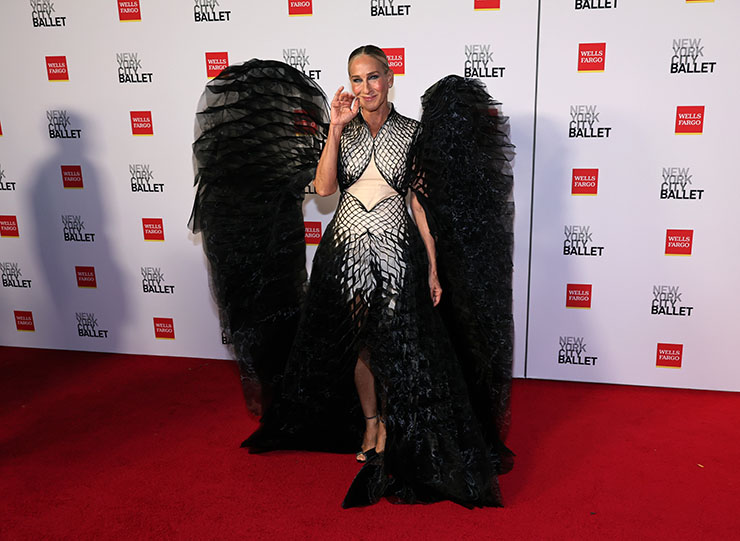 Тоалетът с крилата се превърна в основен акцент на Есенната модна гала вечер на Нюйоркския балет снощи. Сара Джесика Паркър мигновено прикова вниманието на всички, разпервайки модните си крила на червения килим.