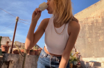 Нашето момиче просто си пие кафето някъде там на нечий покрив, обградена от саксии с кактуси и с живописен простор с щипки, който няма как да не докосне балканската душа.
