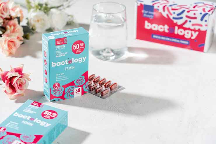 Научно разработената формула на Bactology Femin включва Lactobacillus acidophilus и Lactobacillus rhamnosus – щамове, доказано ефективни в поддържането на здравословна вагинална флора. Те се „захващат“ за лигавицата, блокират навлизането на вредни микроорганизми и действат противовъзпалително. Всяка доза съдържа 50 милиарда активни бактерии, обогатени с коластра за имунитет и екстракт от българска роза Дамасцена – мощен антиоксидант с деликатен детокс ефект.