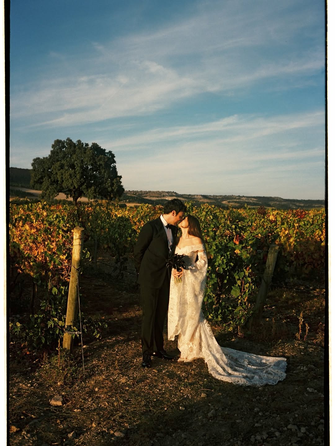 Церемонията се състоя преди няколко седмици, но чак сега семейството разпространи снимки. Сватбата бе в живописна испанска винарна — Abadía Retuerta‑Le Domaine, разположена сред лозови масиви в региона Рибера дел Дуеро.