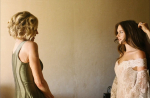 Булката смени две рокли. Едната бе за официалната част и бе на модна къща Rodarte, бяла изящна дантела рокля с „готически“ нотки — прозрачен шифон и елегантно подчертани рамене. За вечерта смени визията си с шифонена рокля в друг силует — перфектна за танци.