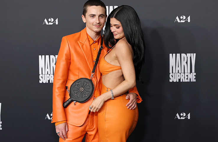 И двамата бяха облечени в създадени специално за тях тоалети на Chrome Hearts. Тимъти заложи на оранжев кожен костюм, комбиниран с оранжева копринена риза и оранжеви ботуши. Половинката му Кайли пък бе в оранжева рокля по тялото с дълбоко деколте и гол гръб.