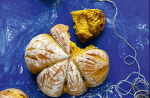 Готовото тесто обърнете на набрашнен плот и му придайте кръгла форма с въртеливи движения. Ако искате да придадете на хляба красива форма, отрежете няколко еднакви по дължина въженца от коноп и ги кръстосайте на дъното на съда, в който ще втасва тестото през нощта, след това го прехвърлете в него. Съберете краищата и ги завържете на възел, като оставите място на бъдещия хляб да порасне в тях. Приберете в хладилник. Печете на 230°С за 20 минути и на 200°С за още 20-30 минути. След изпичане срежете конопените въженца и вашият хляб „тиква“ е готов.