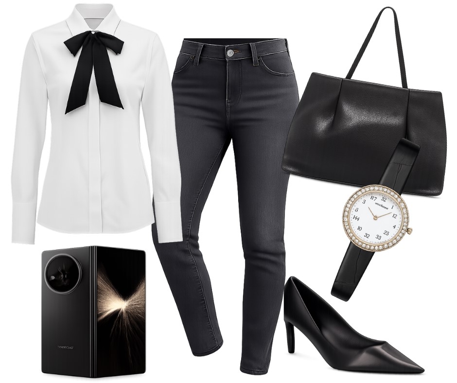 Направихме бърз, почти инстинктивен разбор и го включихме в няколко различни ежедневни аутфита, защото в крайна сметка за много жени смартфонът е statement accessory, независимо дали сме склонни да го признаем на глас. Звучи повърхностно, но не е случайно. Проучвания в сферата на consumer behavior, включително анализи, публикувани в Harvard Business Review, показват, че жените взимат решения за покупка силно повлияни от визуалното възприятие, първото усещане и емоционалния контекст около продукта - много преди да стигнат до списъка със спецификации. Именно за това детайлите имат значение.