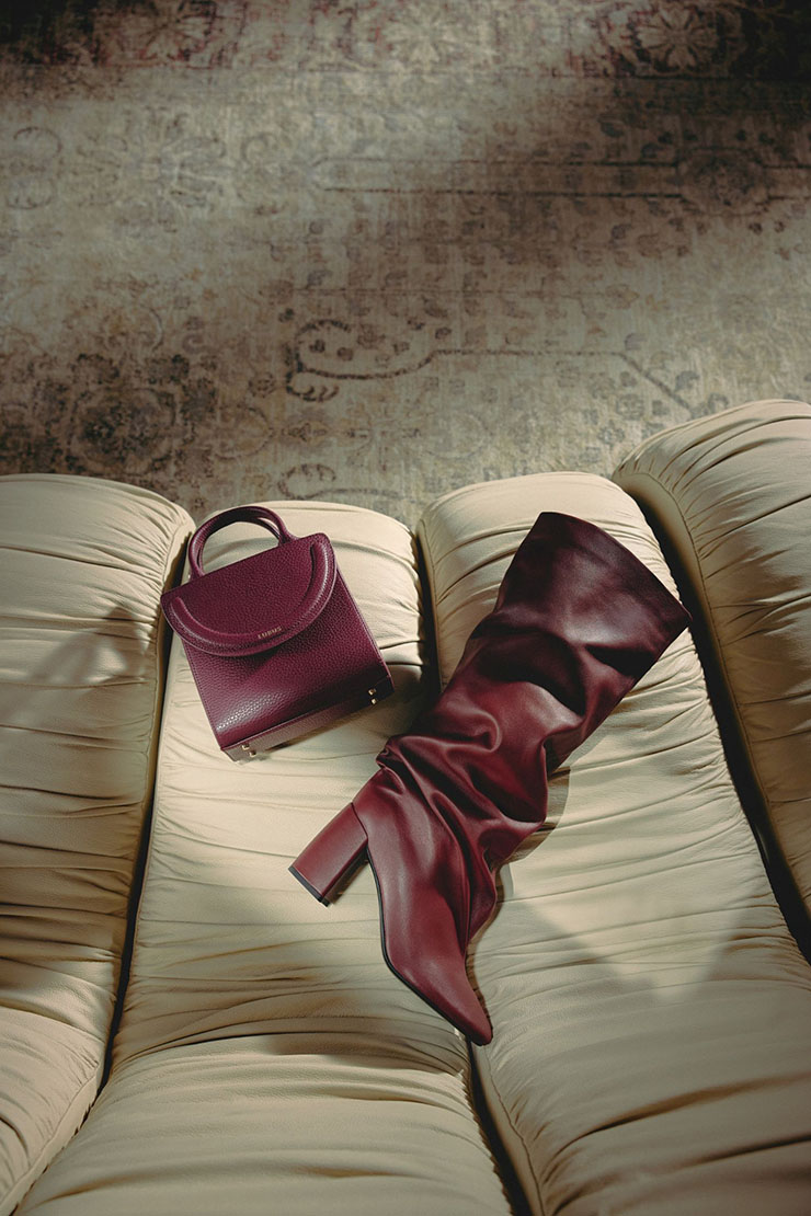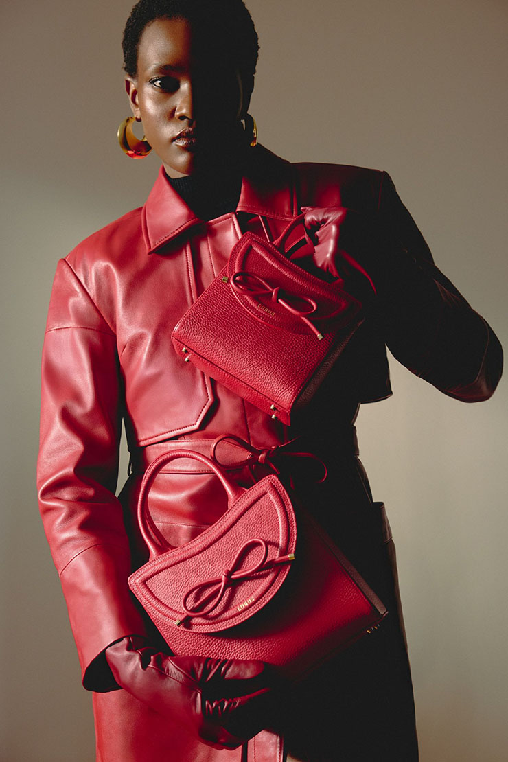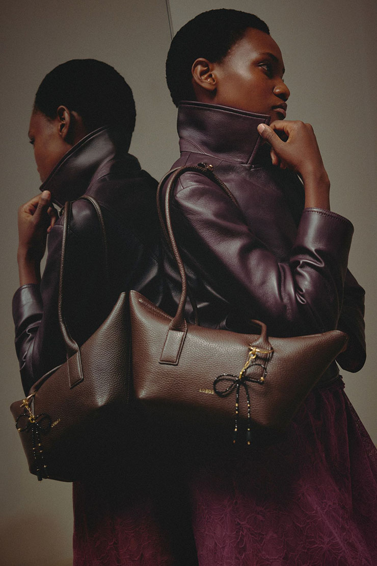 В центъра на разказа са чантите LOBOS – ръчно изработени от висококачествена кожа, с фокус върху формата и детайла. Моделите Capri, Bergamo, Wort и Bologna се допълват от LACCA BOW – подвижен капак с мотив панделка, който се превръща във визуален подпис на колекцията. Същият мотив присъства и в модела BLACK BOW, където функционалността среща скулптурния елемент. Това не са аксесоари в класическия смисъл, а обекти, в които всяка линия и всеки шев имат значение.