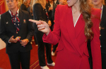 Катрин заложи на ярък червен ансамбъл, с който безпогрешно привлече всички погледи.