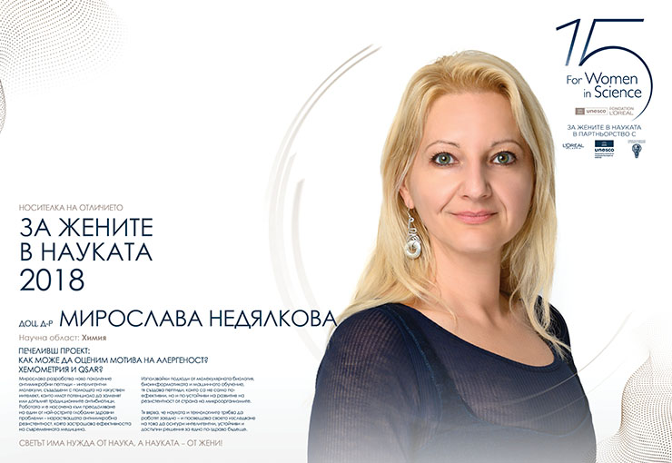 Мирослава Недялкова е носителка на отличието „За жените в науката“ през 2018. Нейната професионална сфера е химията – използва AI модели за предсказване и дизайн на антимикробни пептиди, които да помогнат в борбата с антибиотичната резистентност.