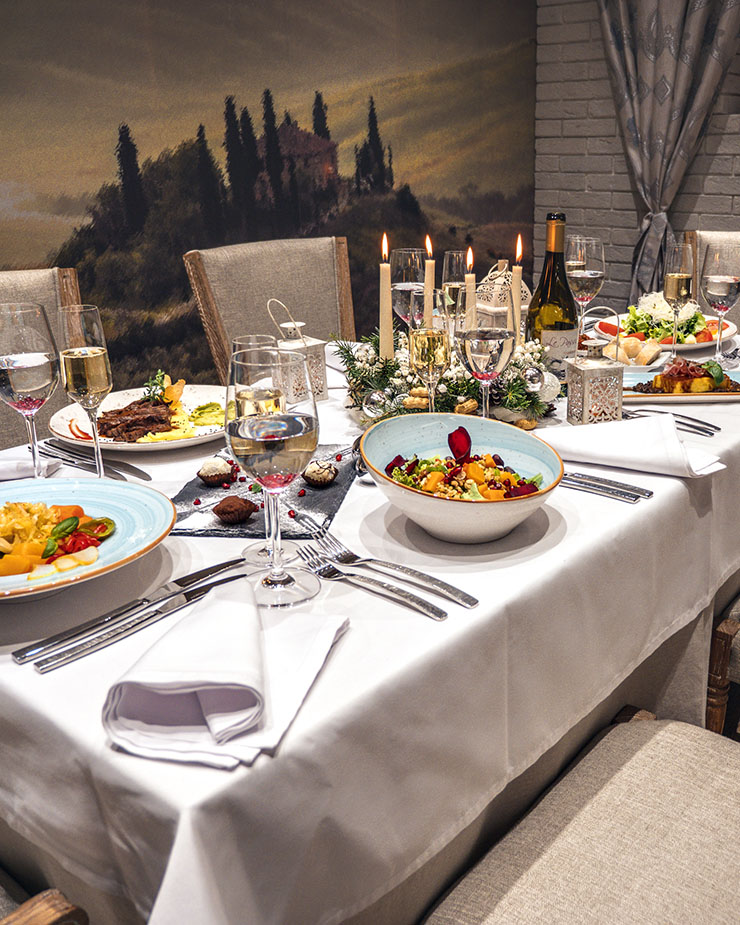 За менюто, съпътстващо избора на вината при дегустацията, се грижи екипът „Синти“. Хармонията е перфектна. С чудесно овладян порив за експеримент в леко вакханалната комбинация на запечено козе сирене и трюфел. С приятния превод на класиката в салатата със занаятчийско краве сирене от малка мандра в Лещен, песто с билки от градината на вилата и зехтин, пресован специално за Синтика в Гърция. С ароматното пилешко филе от местна ферма с жу, пюре от батат и олио от копър. И с невероятно свежия и витален десерт на Яна Монова – реване с маракуя, бял шоколад и ядки.
