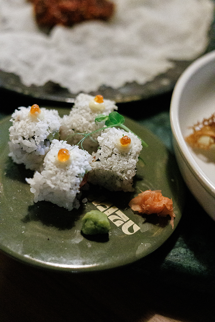 Между предястието и основното с радост разпоз-нах главния готвач тук Шеф Сънг Хуан Лий от Република Корея (Южна Корея). Имала съм честта да опитам приготвените от него традиционни корейски ястия и преди, както и да направя кимчи по негова стара семейна рецепта – при това под вещите му напътствия, на събитие по покана на Посолството на Република Корея по повод празника „кимджанг“. Кимджанг (kimjang) е корейският традиционен ритуал за приготвяне на кимчи – ферментирали зеленчуци, най-често китайско зеле, с люта паста, подправки и морски дарове. Това не е просто рецепта, а социално и културно събитие, признато от ЮНЕСКО като нематериално културно наследство. Ако дойдете в MIZU, задължително опитайте кимчи, приготвено лично от шеф Лий. На събитието преди две години шеф Лий успя да разпали въображението на всички гости, поднасяйки ни нашенска баница, но с плънка от кимчи. Беше невероятно вкусна. Затова, когато сега излезе от кухнята, за да презентира предястията от дегустационното меню на MIZU, вече знаех, че ме очаква много вълнуващо гурме пътешествие в Азия. Той наистина умее красиво да разказва истории чрез вкусовете и храната.