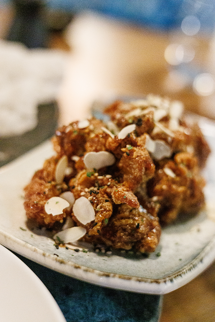 В MIZU може да избирате и между две дегустационни авторски менюта. Спирам се на меню N2. То е седемстепенно и включва микс от предястия като: URAMAKI SAKE със сьомга, авокадо салса, панко, лайм, юзу майонеза, хайвер от сьомга, бейби рукола, чипс от лотос, краставица. Поднасят ни и Корейски пикантен тартар от телешко бонфиле с хрупкава оризова кора, това ястие е сред новите ми фаворити, заедно със Сладкото чили пиле. Това пиле е може би най-популярното и обичано ястие от уличната храна в Корея в наши дни и представлява пържено пиле със сладко-пикантен сос. Поднасят ни и Сет гьоза, и дим сум (Кимчи Манду, BBQ Манду, Зеленчукова гьоза, Пилешка гьоза, Дим сум със скариди.) Все любими комбинации.