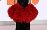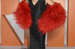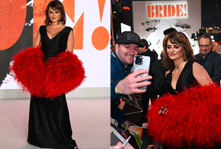 Любопитен беше изборът на самия тоалет – на вид семпла и изчистена като дизайн черна рокля, но с един огромен червен пухкав аксесоар, който определено създаваше затруднения за Пенелопе при придвижването.