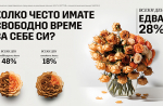 Дори и парите да не са проблем, 70% от българките биха работили. В същото време само 28% от тях имат свободно време за себе си всеки ден, като при омъжените жени процентът пада на 18%, а при необвързаните се вдига до 48%. Цифрите са от разкриващото интересни противоречия изследване „Портрет на българските жени“.