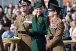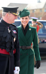 Кейт Мидълтън пак се облече в зелено за парада на гвардейците по случай деня на Свети Патрик. Принцесата на Уелс спази дългогодишната си традиция и да застане редом до ирландските войници. Тя се срещна с гвардейците от първи батальон, намиращ се в западен Лондон, снима се с тях, закичи се със детелина и зелена китка. Отново се видя и с четириногия си приятел Търлоу Мор - ирландски вълкодав, който е талисман на полка. Вижте в галерията ни снимки от събитието.
