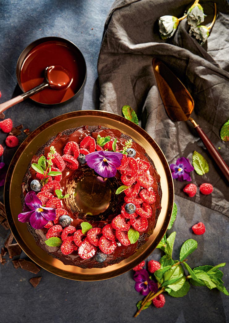 КЕКС С ЧЕРВЕНО ВИНО, ШОКОЛАДОВ ТОПИНГ И ПРЕСНИ МАЛИНИ