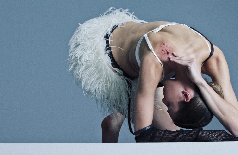 вляво: рокля BL!P от магазин Vagabond вдясно: сутиен и бикини Cotton Club от магазини Seven Seconds ръкави BCBG MAXAZRIA кожено боди от магазин Sex Well