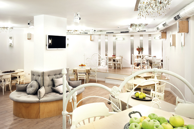Все едно си в просторна дневна, обрана откъм цветове, но много уютна. Все едно си вкъщи или по-точно в мечтаната си бяла и топла къща. Такова е първото ми усещане, когато прекрачвам прага на ресторант „Преди 10“. Философията на собствениците му е, че хората влизат в заведение натоварени и трябва да си отпочинат, докато се хранят. Затова интериорът е решен в бяло и слонова кост, с ярък цвят само в плодовете, храната и цветята.