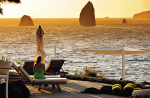 За мнозина вулканите на Липарийските острови са вълнуваща гледка. На 391 м стърчи вулканът, виновен за появата на остров от дълбините на морето, наречен Теразия. Така се казва и курортът в подножието му, построен от вулканични камъни и сицилианска теракота. Прекрасни 97 стаи и апартаменти гарантират удобство и уют. Естествено, хотелът предлага и ексклузивни спа удоволствия – едно от тях е кална баня на открито в естествен термален басейн. Морето е съвсем наблизо, а температурата на водата по крайбрежието е доста по-висока от обичайното заради близостта на топлите извори.