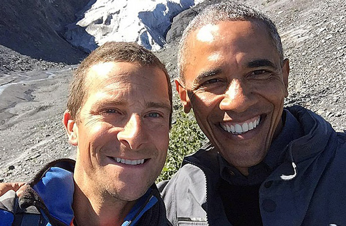 Барак Обама бе специален гост в предаването на Беър Грилс за оцеляване в дивата природа. Президентът на САЩ му отдели част от времето си докато бе на тридневно посещение в Аляска във връзка с промените в климата. Той се присъедини за кратко към тв водещия, за да научи някои неща във връзка с оцеляването сред природата. И понеже Грилс обича да подлага на изпитание гостите в предаването му, давайки им да ядат живи гадинки, като червеи например, президентът предварително бе поставил няколко условия – „да няма крака и да не му се виждат очите“. Грилс се съобрази с изискването и накара президента да хапне току-що уловена сьомга. Само дето рибата преди това бе обилно сдъвкана от мечка, която бе отхапала част от нея, а след това я бе зарязала. Въпреки че първоначално Барак Обама не изглеждаше особено ентусиазиран да яде остатъците от обяда на мечка, в крайна сметка прие предизвикателството. Целият епизод с участието на президента ще бъде излъчен по-късно, но сега имаме кратък откъс имемнно с хапването на сьомгата.
