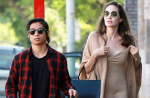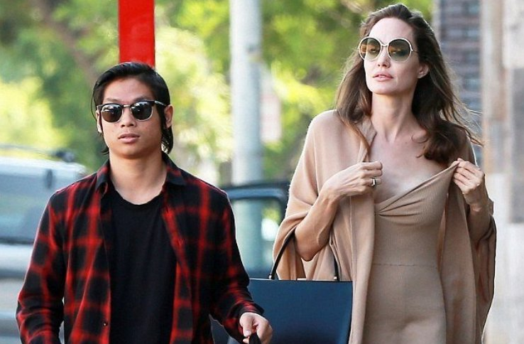 Анджелина Джоли бе уловена от папараци по време на неделна разходка – обяд плюс шопинг – в компанията на 14-годишния си син Пакс. Актрисата е избрала секси, но и елегантна рокля в телесен цвят с голи рамене (откриваща татуировката на лявото й рамо), допълнена от шал и обувки в същия нюанс.