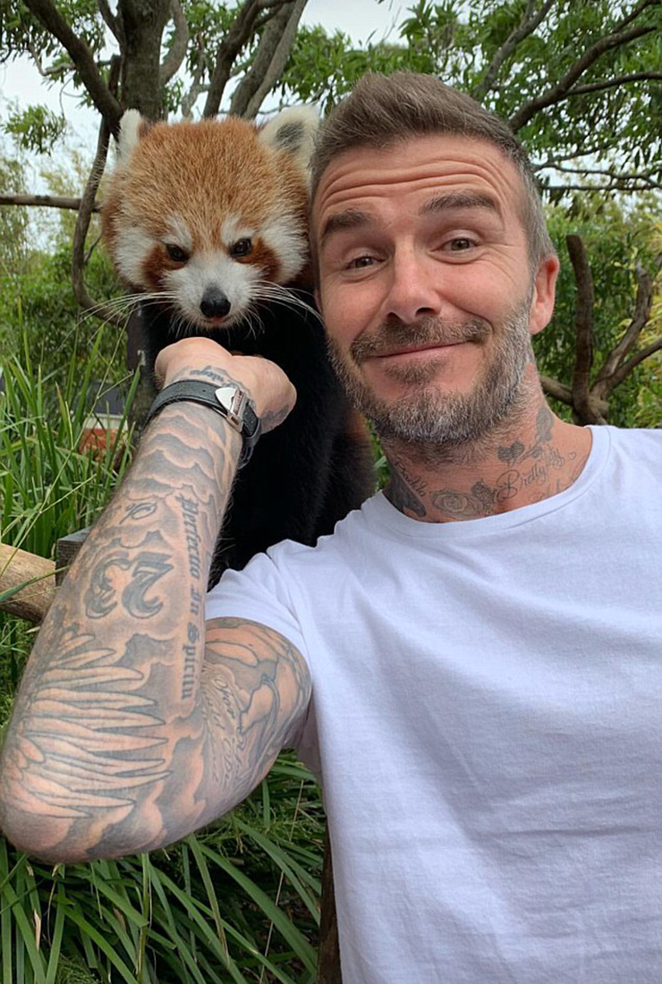 Дейвид не пропуска да споделя вълнуващите емоции със своите последователи в Instagram. Той смело позира с тасманийски дявол, на когото позволи буквално да му се качи на главата. Тасманийският дявол е сладък, но опасен месояден бозайник, който обаче стана приятел на Дейвид Бекъм.