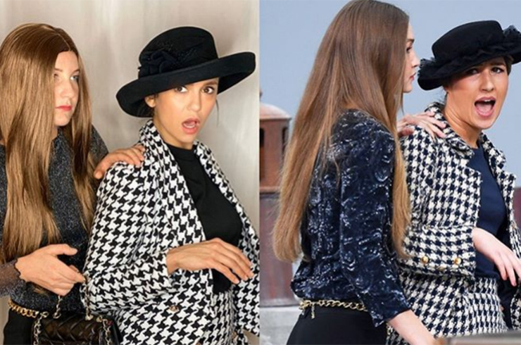 Звездните Хелоуин партита започнаха и всички запалени почитатели на маскирането вече смениха по няколко костюма. Нина Добрев е една от тях. Ако на холивудското парти на Casamigos тя бе маскирана като мрачен персонаж, сега актрисата влезе в ролята на комедиантката Мари (Marie S'Infiltre), която предизвика фурор на дефилето на Chanel по време на Седмицата на модата, качвайки се внезапно на сцената, където започна да върви с моделите.
