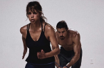 Актрисата прави последователни упражнения с кръгове на раменете, като за повече ефективност около китките си е сложила тежести. Друго препоръчано от личния й треньор упражнение е „полета на птицата“ - силно приклякане и припляскване с ръцете нагоре и надолу. Хали допълва списъка с прости упражнения, които биха могли да се правят у дома с клекове, така че да се включат и краката. От изправено положение прикляква бързо и след това подскача рязко, изпъвайки ръце нагоре.