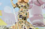 И не става въпрос само за традиционната перука, с която така умело крие лицето си. Този път 44-годишната певица бе решила да ни впечатли и с особено интересна рокля. А именно – тоалетът бе изцяло покрит със снимки на кучета.