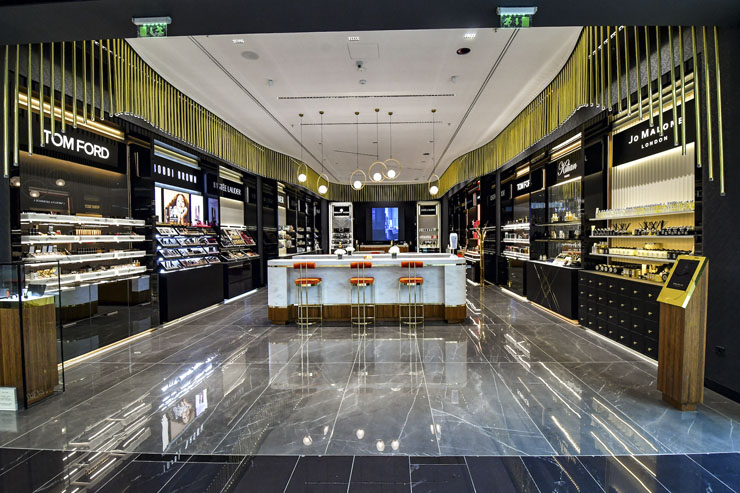 Издържани в черни и златни тонове, магазините предлагат единствено по рода си взаимодействие с продуктите и индивидуалността на всеки бранд.