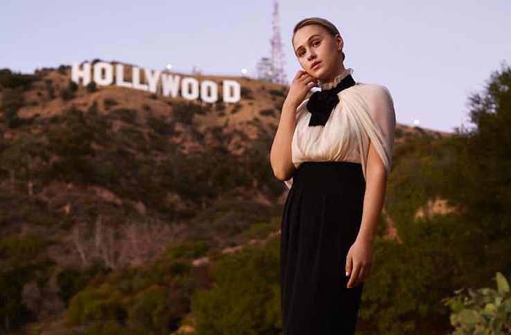 За снимките в броя Мария Бакалова е облечена този път в рокля на Chanel. И както при досегашните й официални визии с тоалети на Dior, Armani и Prada, сега отново изглежда прекрасно. Заснета е на фона на емблематичния надпис Hollywood.