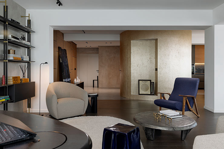 Собствениците, семейство с две вече пораснали деца, имат отношение към интериорния дизайн. В тяхно лице Румен среща истински партньори, готови за диалог и отворени към по-нестандартни идеи. Още на първата им среща дизайнерът усеща свободата, с която ще работи – той на практика получава картбланш за оформянето на пространството.
