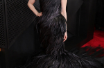 Първо за червения килим преди началото на събитието Лейди Гага се появи драматична черна рокля, покрита с пера от Matières Fécales.