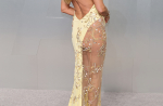 Хайди бе в дълга рокля в мек „маслено жълт“ нюанс от Chrome Hearts, който май имаше повече прозрачни материи, отколкото плътен текстил. Клум допълни тоалета със златни бижута и елегантни златни токчета Paris Texas.