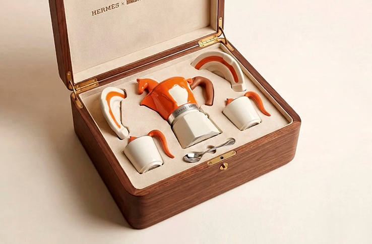 Вдъхновена от Годината на коня, дизайнерката Джейн Морели пренася една от най-разпознаваемите икони на дизайна – кафеварката Bialetti Moka – в естетическия свят на Hermès.